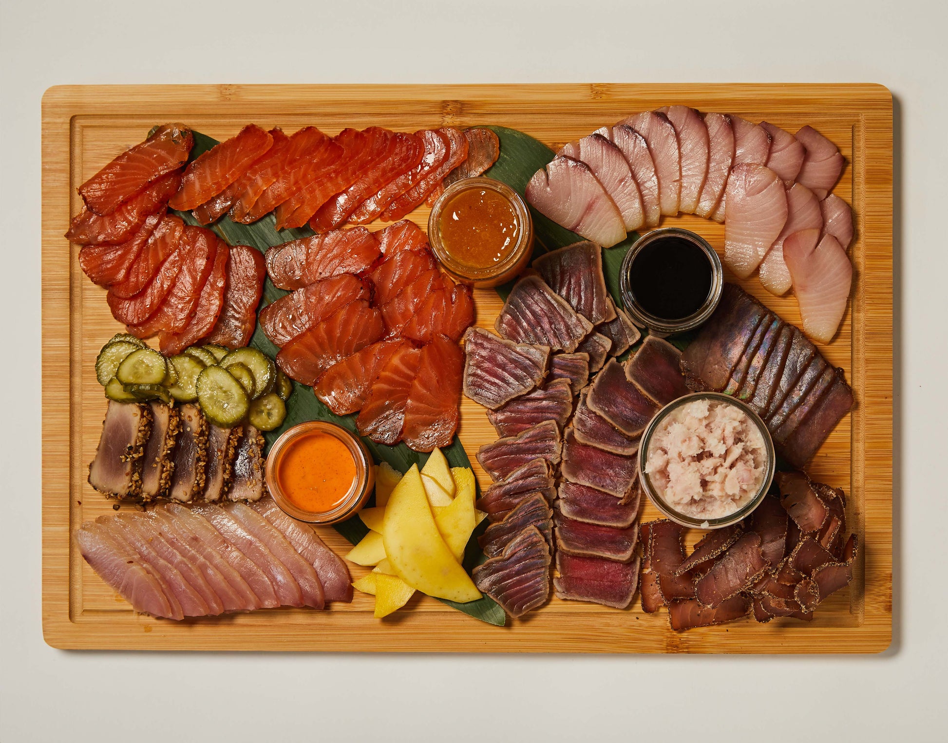 Indulge in a feast for the senses with our Pacific charcuterie fish board! This 18x12 inch board offers 10 delectable flavors, sure to please any palate. Elevate your dining experience with this elegant and versatile addition to your party or meal.